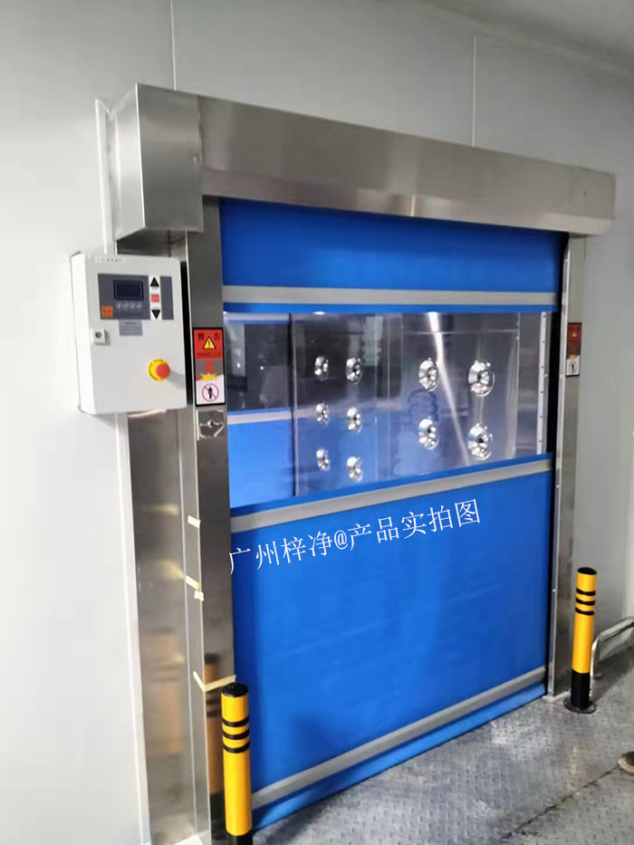 快速卷簾門風淋室:采用快速卷簾門設計,開關速度極快,僅需幾秒鐘即可完成全開的動作。這種快速響應的特性在人流較多或?qū)崈舳纫蟛惶貏e高的場合更為適合。
